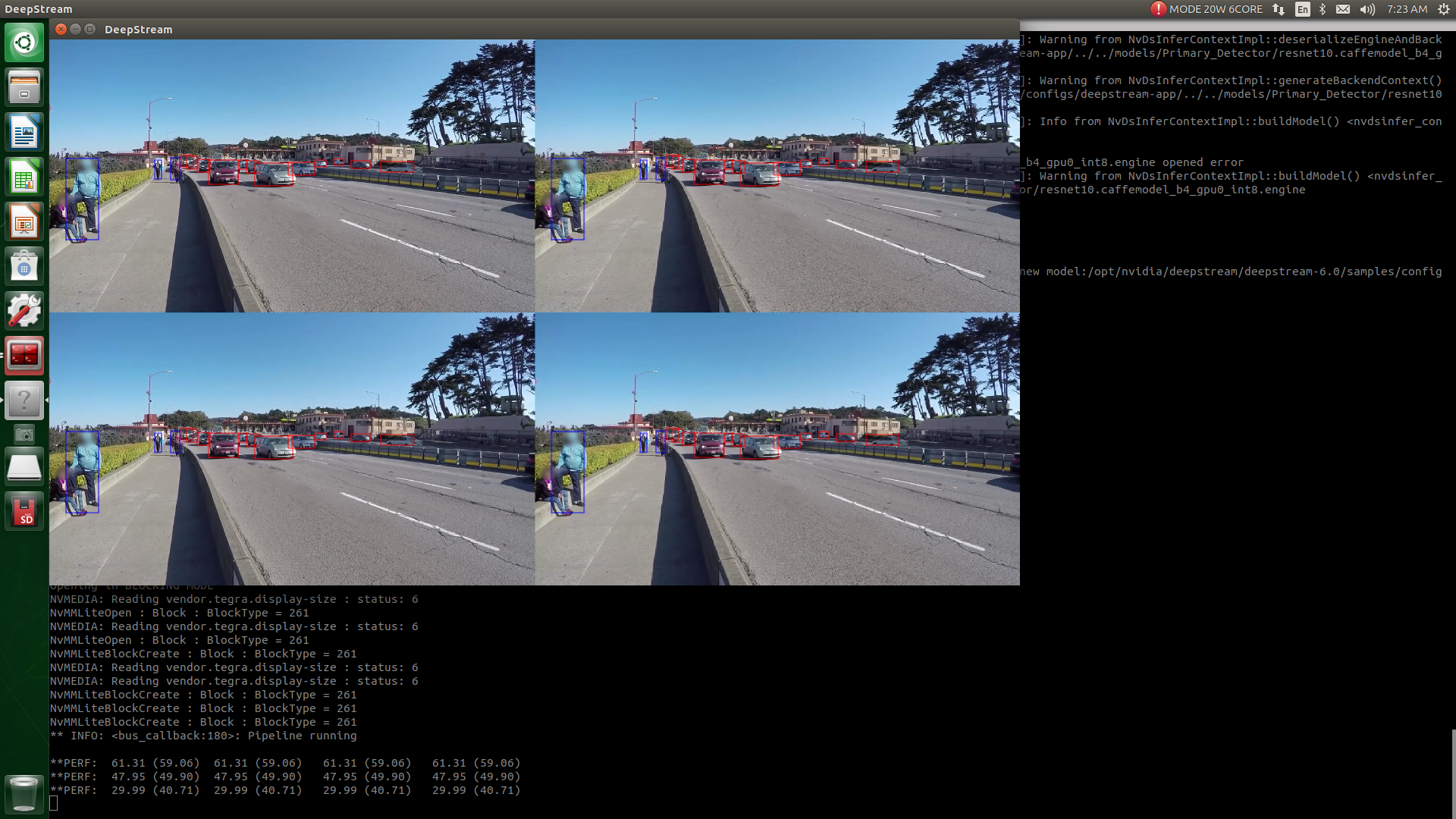 NVIDIA Xavier NX devkit 에 apt-get 명령으로 Deepstream 6.0 설치하고 샘플 어플리케이션을 실행한다.