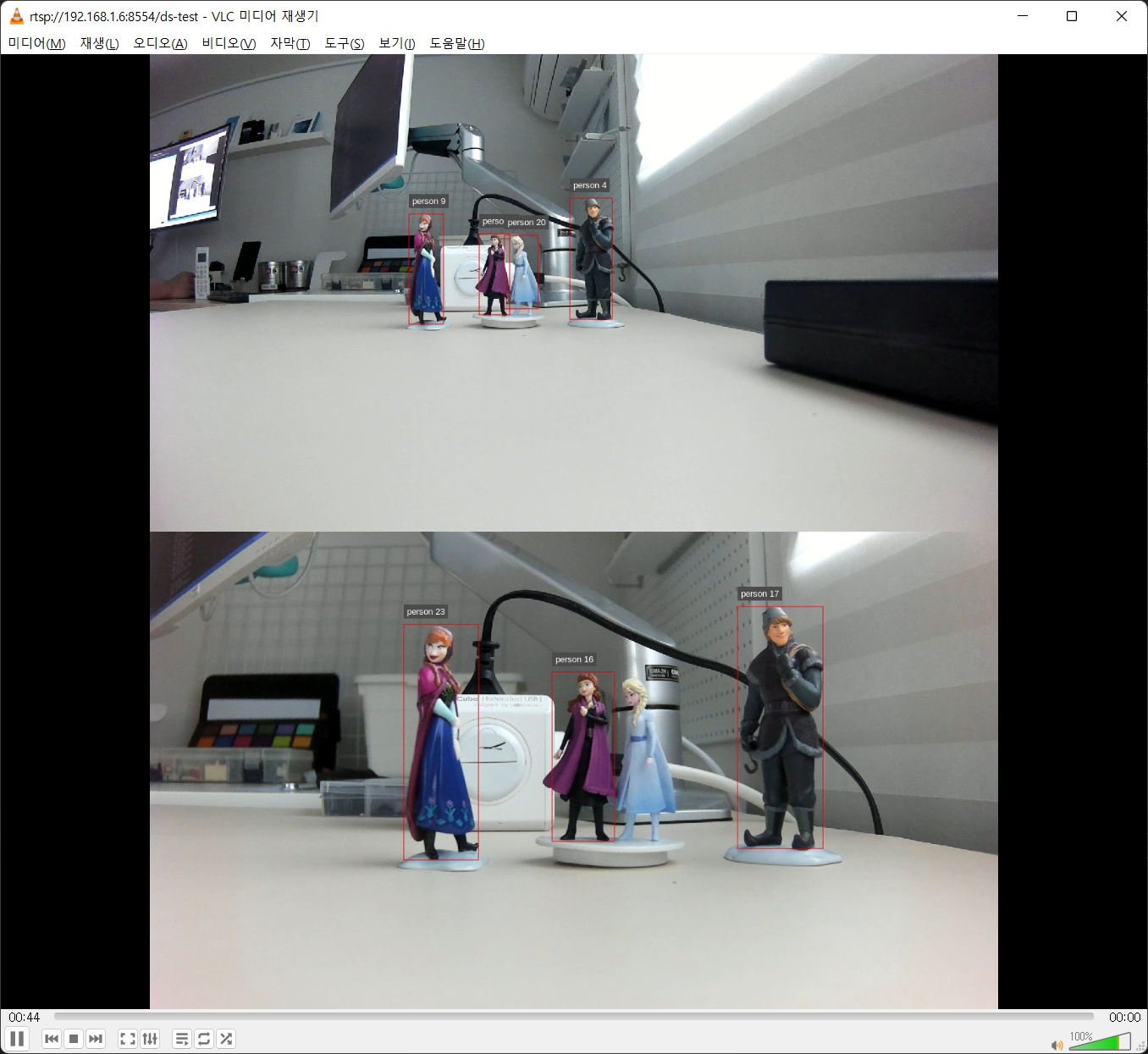 어플리케이션을 실행하면 rtsp://(IP Address)/ds-test 에서 영상이 전송된다. 아래와 같이 gstreamer 를 이용해서 영상을 수시할 수 있다.
